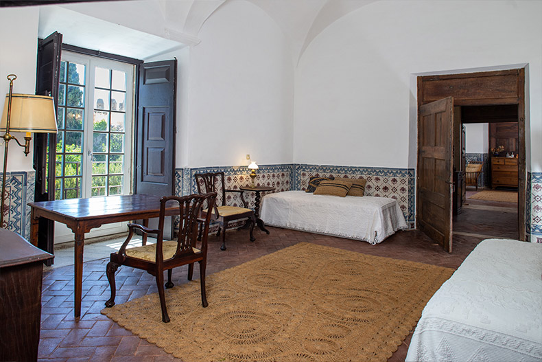 Suite composta por um quarto (com cama king-size), uma sala (que pode ser transformada em quarto twin), uma casa de banho privativa, e um hall de comunicação. Situada na parte nobre do Palácio, tem as paredes revestidas de azulejos do século XVII e tectos abobadados. Equipada com máquina de café e chaleira. Ideal para uma pessoa sozinha, dois amigos, um casal com ou sem filhos, ou dois casais. Vista para o jardim.